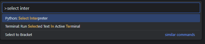 - Select or Type Python: Select Interpreter